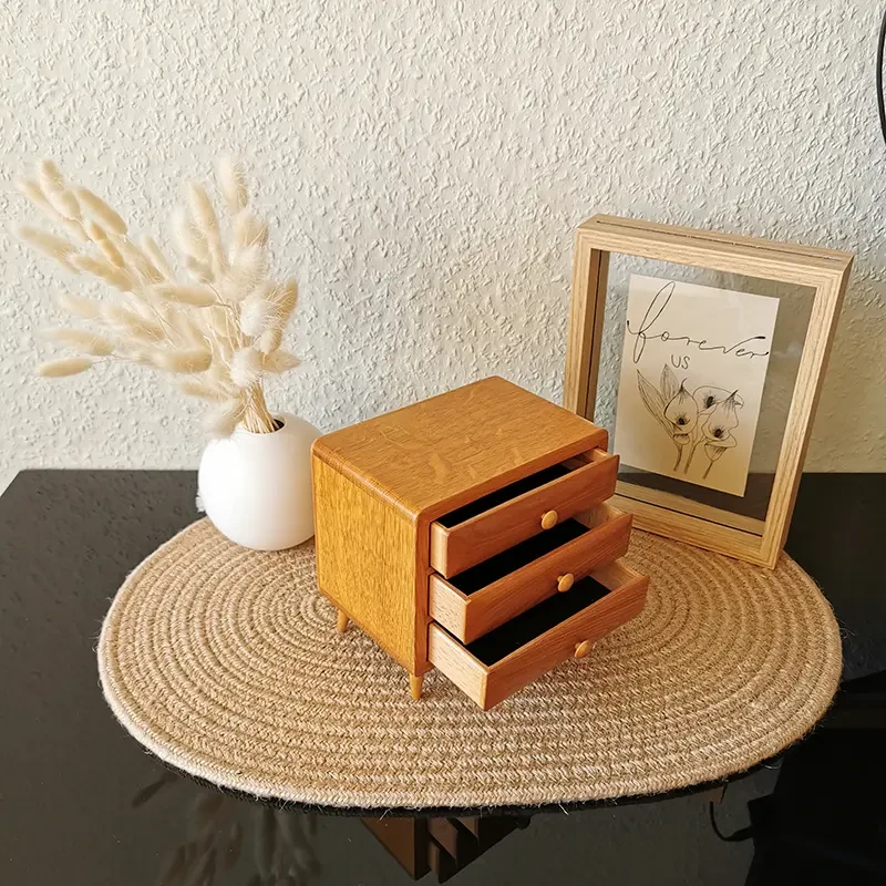 Antike Kommode aus Holz mit Intarsien und zwei Schubladen